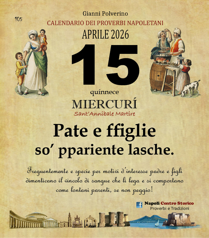 ‘O PRUVERBIO D’ ‘O JUORNO. Mercledì 15aprile 2026