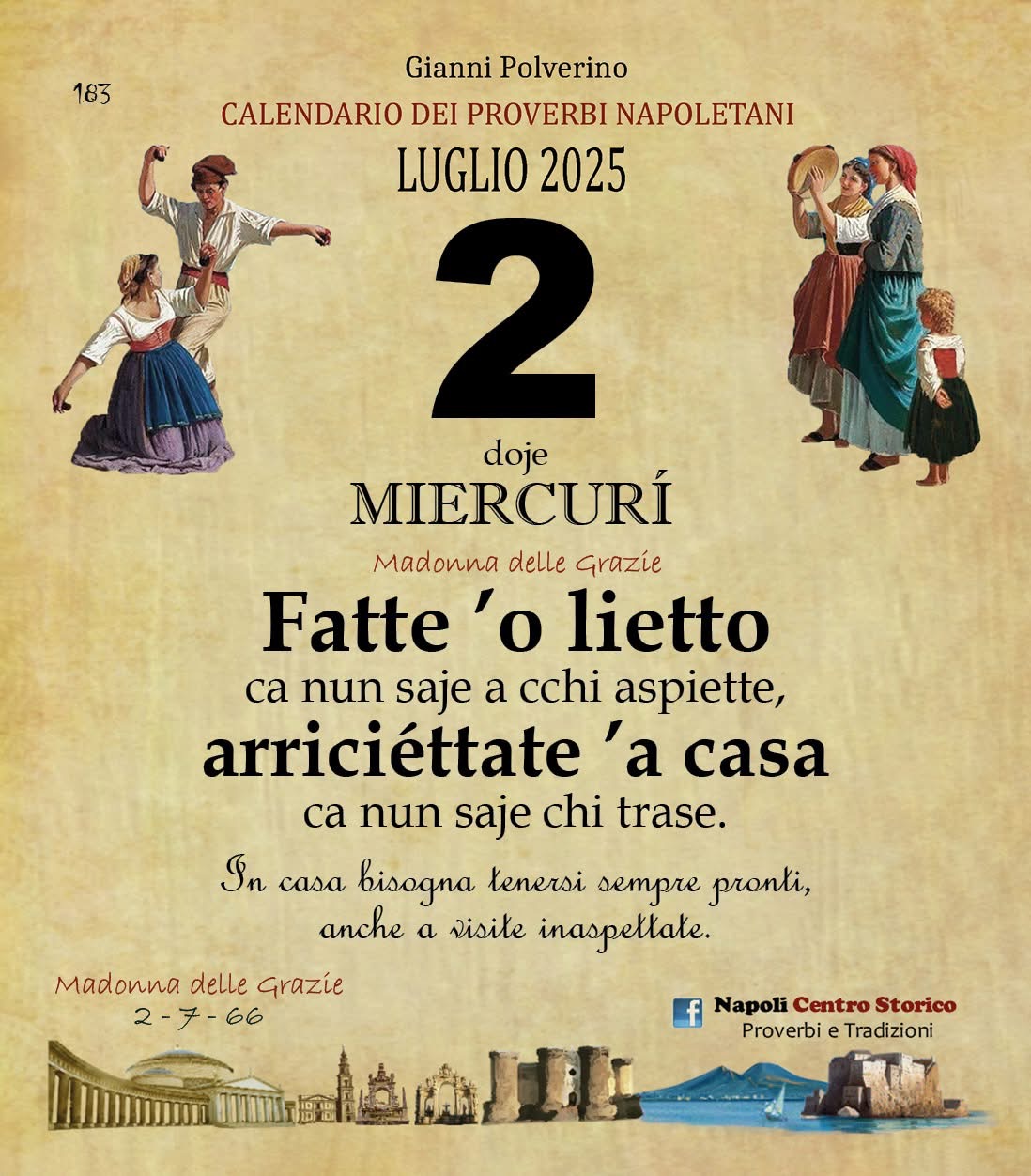 ‘O PRUVERBIO D’ ‘O JUORNO. Mercoledì 2 luglio 2025