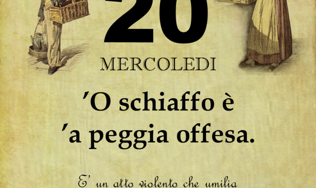 ‘O PRUVERBIO D’ ‘O JUORNO. Mercoledì 20 giugno 2018 20/06/2018 binews.it EVIDENZA, Il Proverbio del Giorno 0 di Gianni Polverino ’O schiaffo è ’a peggia offesa. E’ un atto violento che umilia fortemente chi lo riceve.