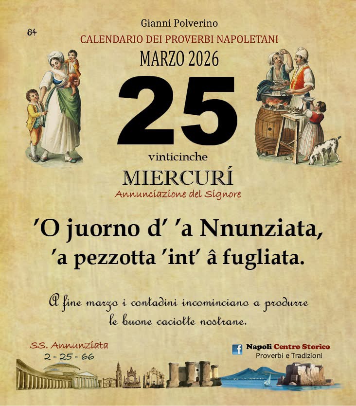 • ‘O PRUVERBIO D’ ‘O JUORNO. Mercoledì 25 marzo 2026