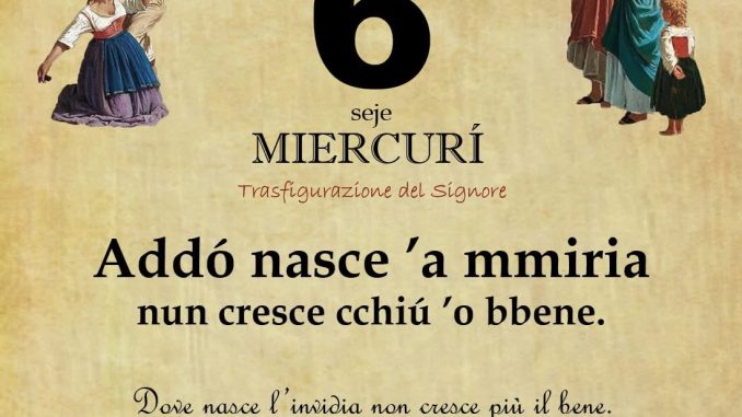 ‘O PRUVERBIO D’ ‘O JUORNO. Mercoledì 6 agosto 2025 06/08/2025 binews.it EVIDENZA, Il Proverbio del Giorno 0 di Gianni Polverino Addó nasce ’a mmiria nun cresce cchiú ’o bbene. Dove nasce l’invidia non cresce più il bene.