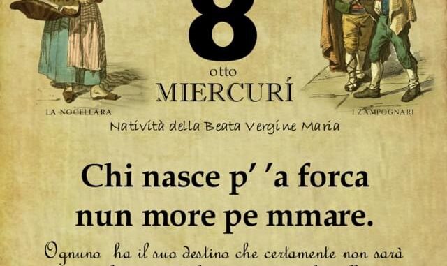 O PRUVERBIO D’ ‘O JUORNO. Mercoledì 8 settembre 2021 08/09/2021 binews.it EVIDENZA, Il Proverbio del Giorno 0 di Gianni Polverino Chi nasce p’ ’a forca nun more pe mmare. Ognuno ha il suo destino che certamente non sarà dei migliori per i delinquenti e per gli scellerati.