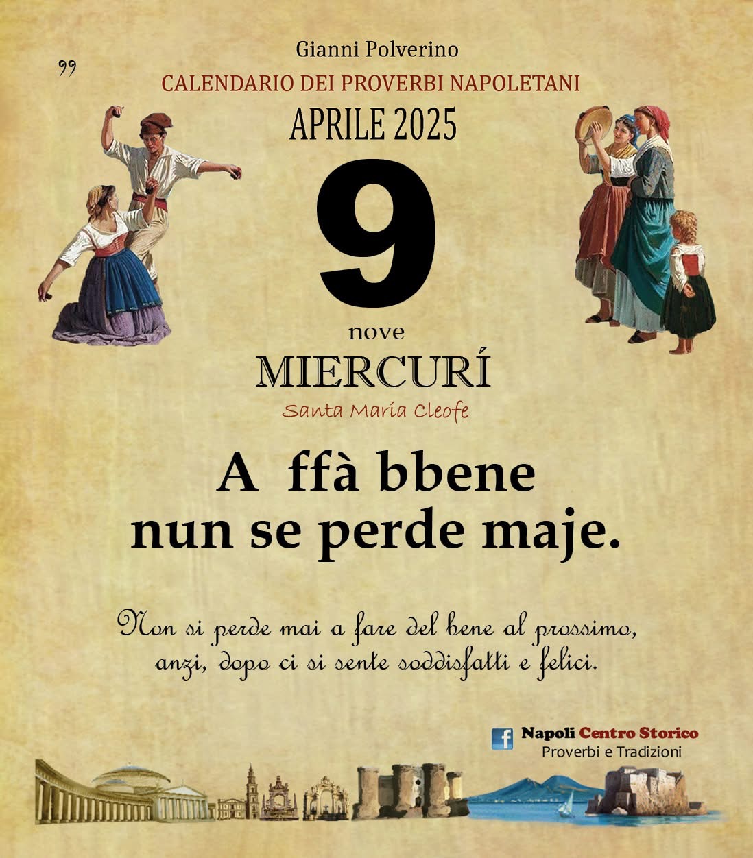 ‘O PRUVERBIO D’ ‘O JUORNO. Mercoledì 9 aprile 2025