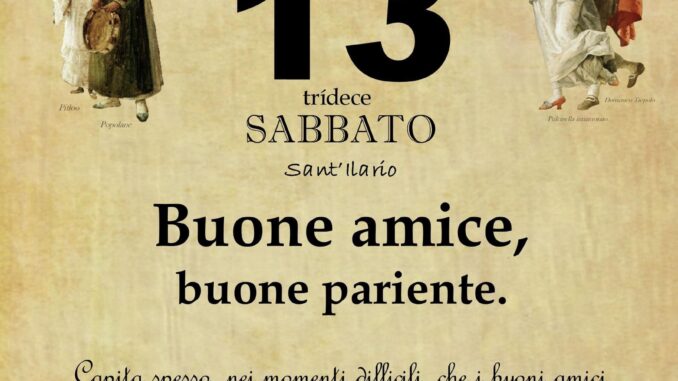 Capita spesso, nei momenti difficili, che i buoni amici sostituiscono i parenti.O PRUVERBIO D O JUORNO. Sabato 13 gennaio 2024