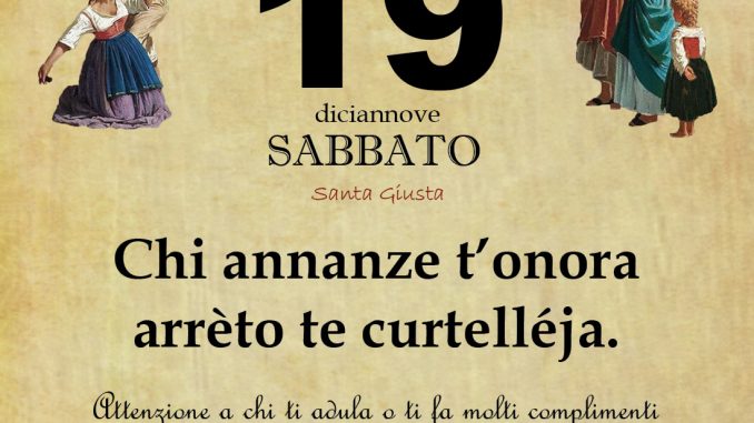 ‘O PRUVERBIO D’ ‘O JUORNO. Sabato 19 luglio 2025 19/07/2025 binews.it EVIDENZA, Il Proverbio del Giorno 0 di Gianni PolverinoChi annanze t’onora arrèto te curtelléja.Attenzione a chi ti adula o ti fa molti complimenti perchè in genere sparla poi alle tue spalle.
