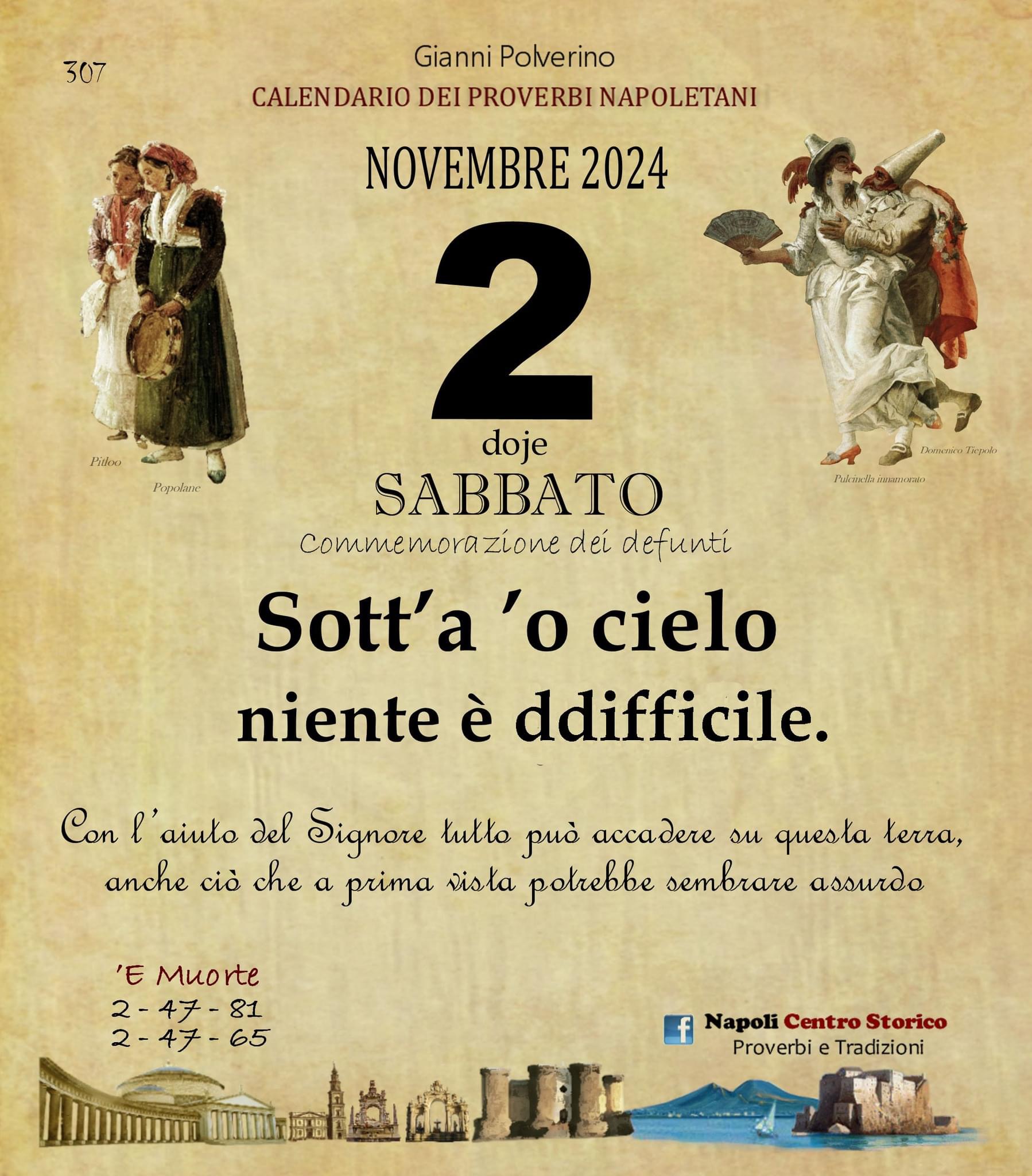 ‘O PRUVERBIO D’ ‘O JUORNO. Sabato 2 novembre 2024
