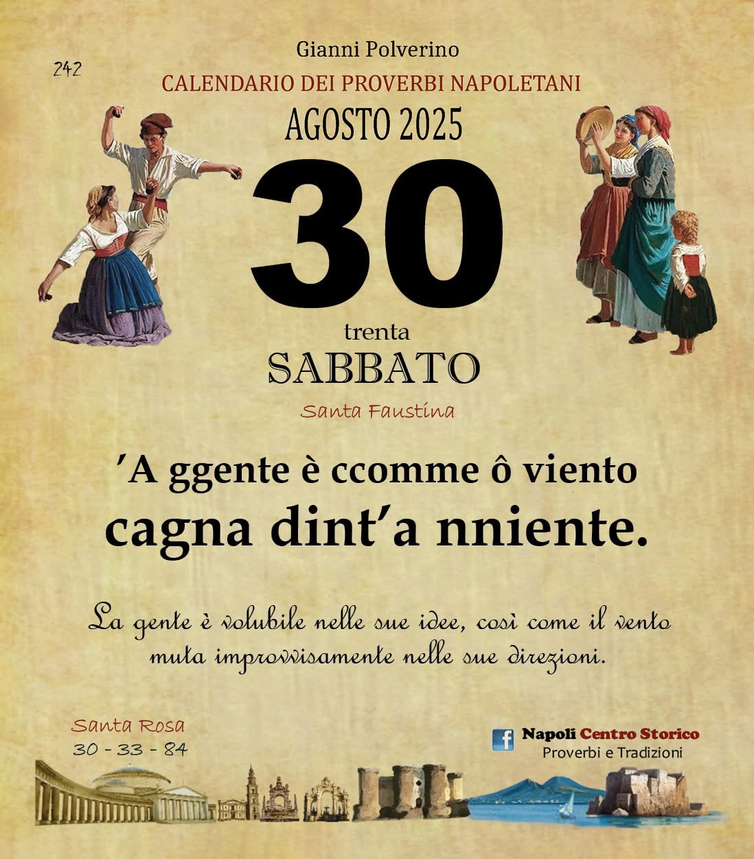 HomeEVIDENZA‘O PRUVERBIO D’ ‘O JUORNO. Sabato 29 agosto 2025