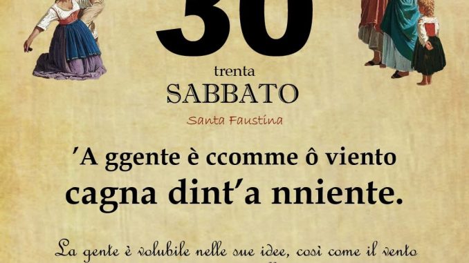 ‘O PRUVERBIO D’ ‘O JUORNO. Sabato 29 agosto 2025 30/08/2025 binews.it EVIDENZA, Il Proverbio del Giorno 0 di Gianni Polverino’A ggente è ccomme ô viento cagna dint’a nniente. La gente è volubile nelle sue idee, così come il vento muta improvvisamente nelle sue direzioni.