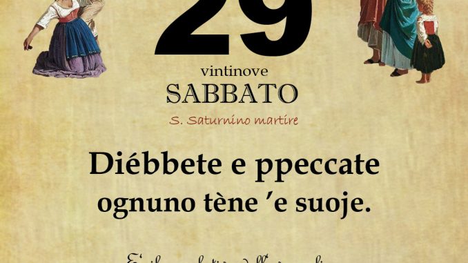 ‘O PRUVERBIO D’ ‘O JUORNO. Sabato 29 novembre 2025 29/11/2025 binews.it EVIDENZA, Il Proverbio del Giorno 0 di Gianni PolverinoDiébbete e ppeccate ognuno tène ’e suoje.E‘ il correlativo dell‘evangelico: Chi è senza peccato scagli la prima pietra.
