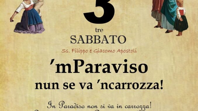 ‘O PRUVERBIO D’ ‘O JUORNO. Sabato 3 maggio 2025 03/05/2025 binews.it EVIDENZA, Il Proverbio del Giorno 0 di Gianni Polverino ’mParaviso nun se va ’ncarrozza! In Paradiso non si va in carrozza! La via che porta in Paradiso è molto stretta,piena di sacrifici, di privazioni e dolori.