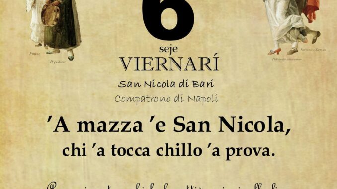 ‘O PRUVERBIO D’ ‘O JUORNO. Venerdì 6 dicembre 2024 06/12/2024 binews.it EVIDENZA, Il Proverbio del Giorno 0 di Gianni Polverino ’A mazza ’e San Nicola, chi ’a tocca chillo ’a prova. Ammonimento a chi fa le cattive azioni, alla fine, queste, si ritorceranno contro.