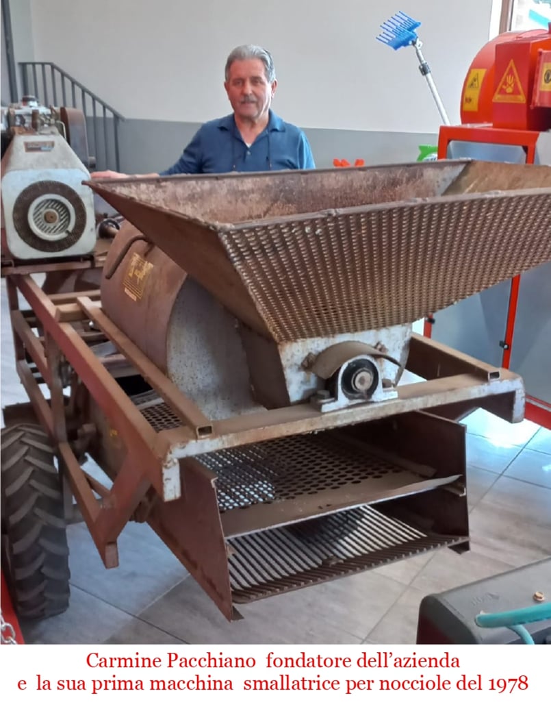 Sceglitriceper nocciole e da lì, un percorso in salita che lo porta negli anni a innovare e produrre macchine raccoglitrici e sceglitrici per Nocciole, Castagne e Noci. Realizza il suo stabilimento nella zona industriale di Sperone dove inizia a produrre macchine per la raccolta di nocciole, castagne, noci e su “richiesta” anche per altre lavorazioni agricole. Una modernissima officina, un vasto show room con esposizione di macchine agricole di produzione propria e concessionaria di trattori e mezzi agricoli di grandi marchi ( Mc Cormick, Ferrari, Cerruti, ect), accessori ed attrezzature varie, quali frese, trinciatrici, atomizzatori, ruspe, pale caricaterra, pompe d’irrorazione e d’irrigazione, carrelli, cisterne per gasolio e motoseghe. Attualmente l’azienda è gestita dai Felice e Clemente, specializzati nel settore tecnico – meccanico e dai nipoti che si occupano di amministrazione e marketing. Le macchine di Pacchiano, oggi, sono richieste in tutta Europa e spesso per carenza di manodopera specializzata l’azienda e costretta a declinare delle richieste. A tal proposito chi fosse interessato può inviare un curriculum al seguente indirizzo mail: [email protected].