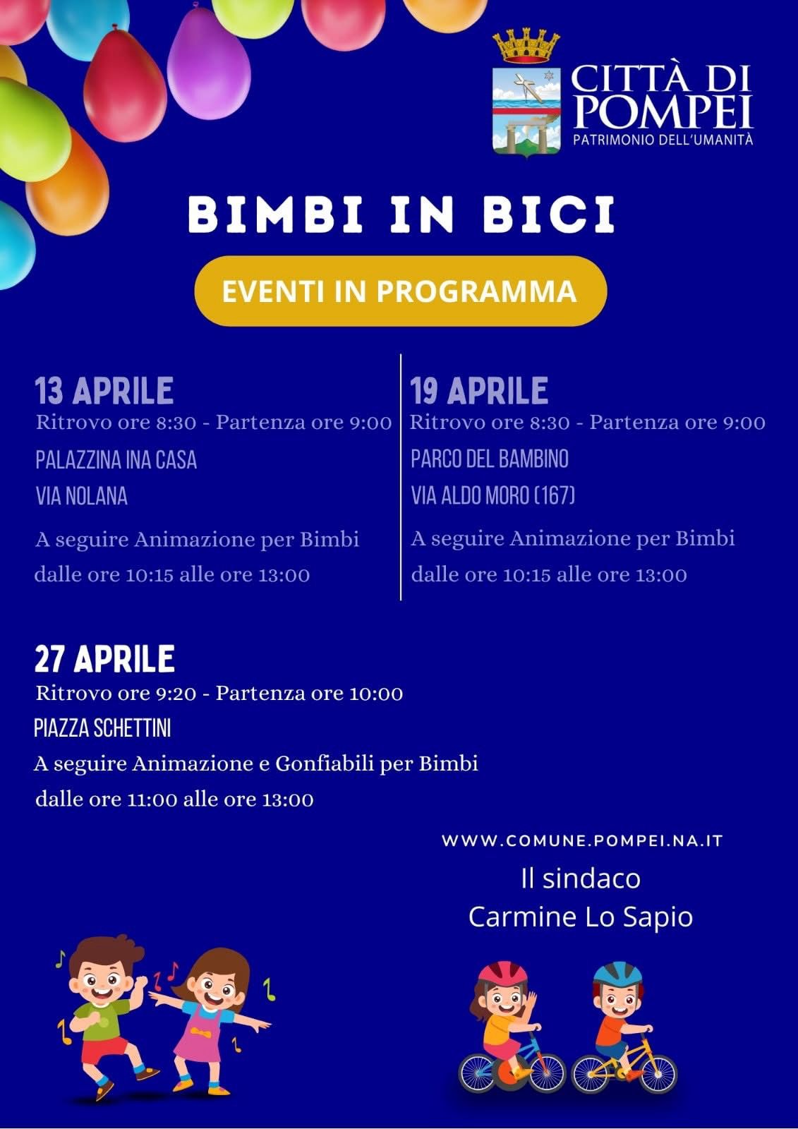 La Città di Pompei, Patrimonio dell’Umanità, si prepara ad accogliere i più piccoli con l’iniziativa “Bimbi in Bici”, tre giornate dedicate allo sport, al gioco e al divertimento. L’evento, promosso dall’Amministrazione comunale guidata dal sindaco Carmine Lo Sapio, coinvolgerà bambini e famiglie in un percorso all’insegna della salute e della socialità.