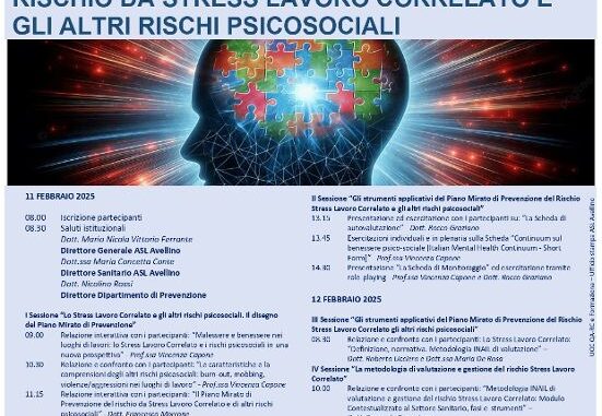 Prevenire lo stress lavoro correlato. L’ASL di Avellino, diretta da Mario Nicola Vittorio Ferrante, in linea con gli obiettivi previsti dal Piano Regionale della Prevenzione 2020-2025 promuove due giorni dedicati alla formazione di personale medico, sanitario o operatori impegnati nel contrasto al fenomeno dello stress lavoro correlato. Il corso di formazione “Metodologia per prevenire/contrastare il Rischio da Stress Lavoro Correlato e gli altri rischi psicosociali” si terrà l’11 e il 12 febbraio presso l’Aula Pastore dell’ASL di Avellino in via degli Imbimbo.