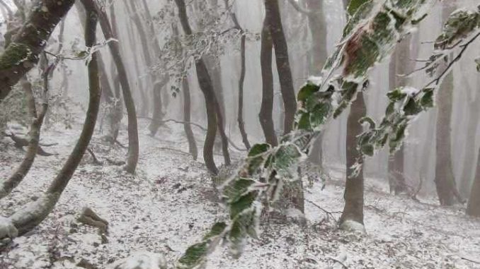 La fotografia, scattata da Antonio De Vizio, testimonia la bellezza e la particolarità del fenomeno: un bosco innevato che sembra uscito da una cartolina invernale, ma che invece appartiene a un autunno appena iniziato.