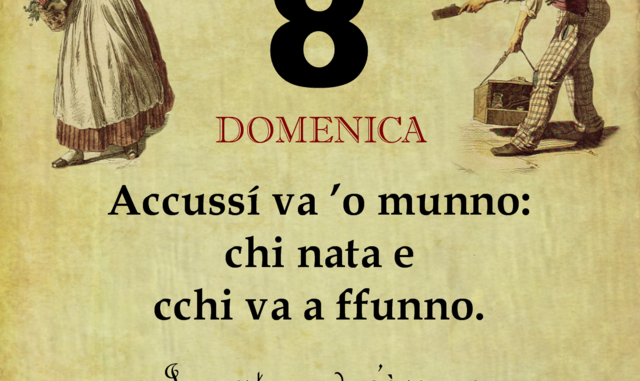 ‘O PRUVERBIO D’ ‘O JUORNO. Domenica 8 ottobre 2017 08/10/2017 binews.it EVIDENZA, Il Proverbio del Giorno 0 Accussí va ’o munno: chi nata e cchi va a ffunno. In questo mondo c’è sempre chi emerge e chi non ce la fa.