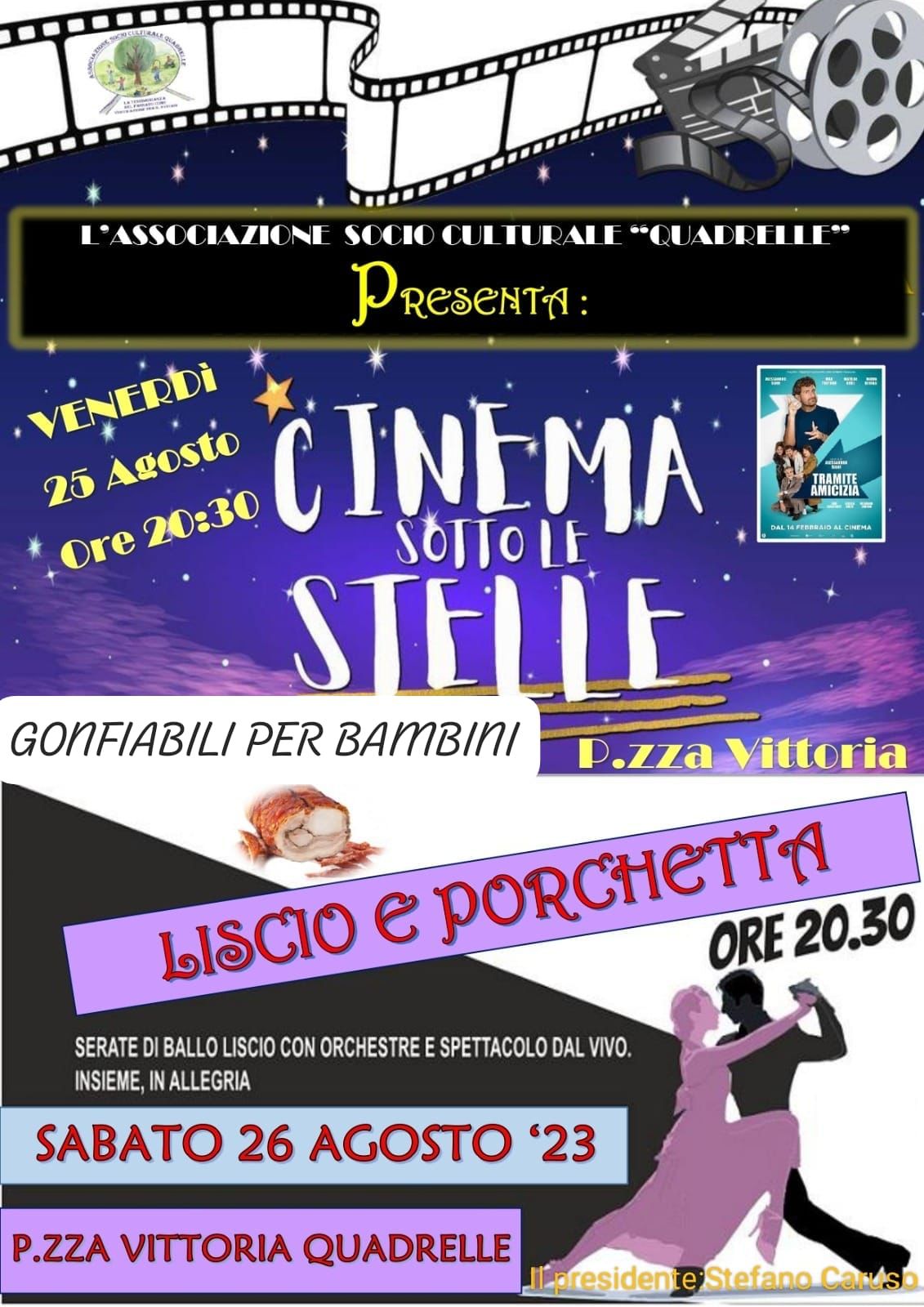 È giunto il momento di trascorrere due serate indimenticabili sotto le stelle nella pittoresca Piazza Vittoria! L’Associazione Socio Culturale è entusiasta di darvi il benvenuto il 25 e il 26 agosto per due eventi che non vorrete perdervi. Abbiamo pianificato due serate piene di divertimento e intrattenimento per soddisfare i gusti di tutti.