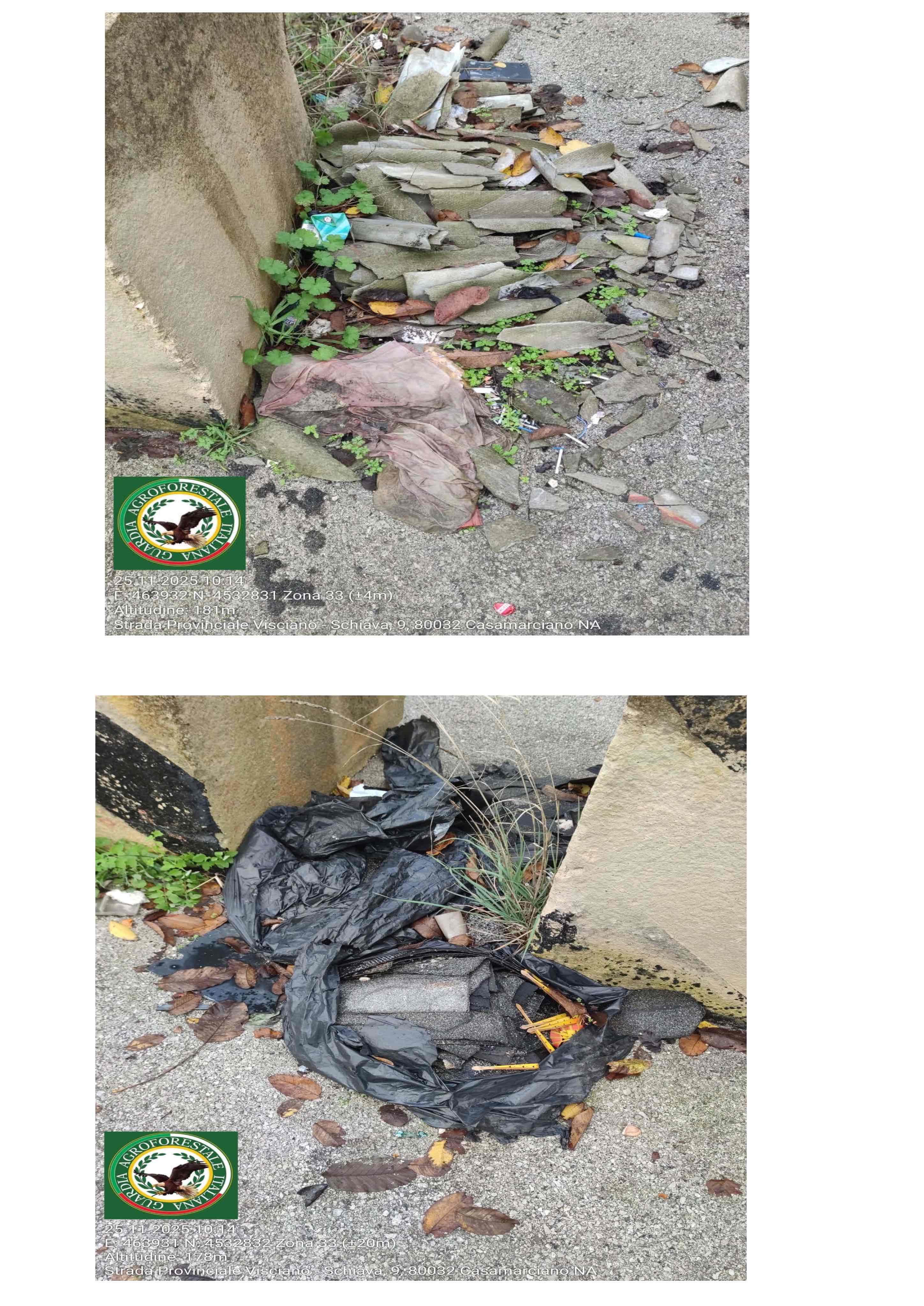 Rifiuti pericolosi abbandonati lungo la Provinciale Visciano–Schiava: la Guardia Agroforestale segnala e chiede interventi urgentiRifiuti pericolosi abbandonati lungo la Provinciale Visciano–Schiava: la Guardia Agroforestale segnala e chiede interventi urgenti