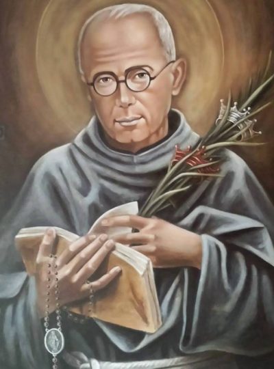 teologia e ritornò in patria, a Cracovia. Il suo zelo missionario lo portò, nel 1930, in Giappone, dove soggiornò per sei anni. Nel 1936 rientra in Polonia. Nel 1939 i tedeschi occuparono la Polonia e quel sacerdote dette subito nell’occhio per le prediche impegnate, ma anche per la sua posizione contro il nazismo. Il 17 settembre 1940 fu arrestato e condotto nel campo di Oranienburg. Il 28 maggio 1941 Kolbe giunse nel campo di concentramento di Auschwitz, dove venne immatricolato con il numero 16670 e addetto a lavori umilianti come il trasporto dei cadaveri ai forni crematori. Nonostante fosse vietato, Kolbe in segreto celebrò due volte una messa e continuò il suo impegno come presbitero. Alla fine di luglio fu trasferito al Blocco 14, dove i prigionieri erano addetti alla mietitura nei campi, ma uno di loro riuscì a fuggire e secondo la legge del campo, dieci prigionieri vennero destinati al bunker della fame. Padre Kolbe si offrì in cambio di uno dei prescelti, un padre di famiglia, suo compagno di prigionia; dopo due settimane di agonia senza acqua né cibo la maggioranza dei condannati era morta di stenti, ma quattro di loro, tra cui Kolbe, erano ancora vivi e continuavano a pregare e cantare inni a Maria. La calma professata dal sacerdote impressionò le SS addette alla guardia, per le quali assistere a questa agonia si rivelò scioccante. Kolbe e i suoi compagni vennero uccisi alla vigilia della Festa dell’Assunzione di Maria, con una iniezione di acido fenico; il francescano martire volontario, tese il braccio dicendo “Ave Maria”, furono le sue ultime parole, era il 14 agosto 1941, i loro corpi vennero cremati il giorno seguente e le ceneri disperse.
