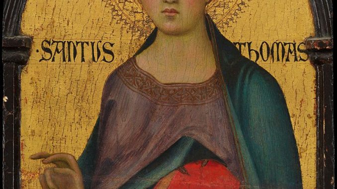 Oggi 3 luglio la chiesa ricorda san Tommaso Didimo, nacque in Galilea nel I secolo a.C., Tommaso, in aramaico, significa “gemello”, e lo stesso significato ha l’appellativo greco, Didimo, con cui l’apostolo viene anche indicato. Era un pescatore, come si deduce dall’episodio della pesca miracolosa nel Vangelo di Giovanni (Gv 21,2), che di lui parla anche in varie altre occasioni, e in particolare per il famoso episodio dell’incredulità (Gv 20, 24-29): «Tommaso, uno dei Dodici, chiamato Didimo, non era con loro quando venne Gesù. Gli dissero allora gli altri discepoli: “Abbiamo visto il Signore!”. Ma egli disse loro: “Se non vedo nelle sue mani il segno dei chiodi e non metto il dito nel posto dei chiodi e non metto la mia mano nel suo costato, non crederò”. Otto giorni dopo i discepoli erano di nuovo in casa e c’era con loro anche Tommaso. Venne Gesù, a porte chiuse, si fermò in mezzo a loro e disse: “Pace a voi!”. Poi disse a Tommaso: “Metti qua il tuo dito e guarda le mie mani; stendi la tua mano, e mettila nel mio costato, e non essere più incredulo ma credente!”. Rispose Tommaso: “Mio Signore e mio Dio!”. Gesù gli disse: “Perché mi hai veduto, hai creduto: beati quelli che pur non avendo visto hanno creduto!”». Secondo una tradizione che risale almeno a Origene, Tommaso evangelizzò la regione dei Parti, cioè la Siria e la Persia: «Quanto agli apostoli e ai discepoli del Salvatore nostro dispersi per tutta la terra, la tradizione riferisce che Tommaso ebbe in sorte la Partia… Tutto questo è riportato testualmente da Origene nel terzo tomo del Commento alla Genesi» (Eusebio di Cesarea, Storia ecclesiastica, III, 1, 1.3). Un’altra tradizione, più tarda, che risale a san Gregorio Nazianzeno, attribuisce a Tommaso l’evangelizzazione dell’India, regione dove avrebbe subito il martirio. Questa tradizione appare accolta anche dagli apocrifi Atti di Tommaso, un testo siriaco della metà del III secolo composto probabilmente a Edessa (attuale Urfa, oggi in Turchia). Secondo questo testo Tommaso giunse fino all’alto corso del fiume Indo, nell’India occidentale, per trasferirsi poi nell’India meridionale, dove morì martire, ucciso a colpi di spada o di lancia, poco lontano da Calamina (odierna Mylapore, India), tra il 68-72 d.C.; patrono degli architetti.