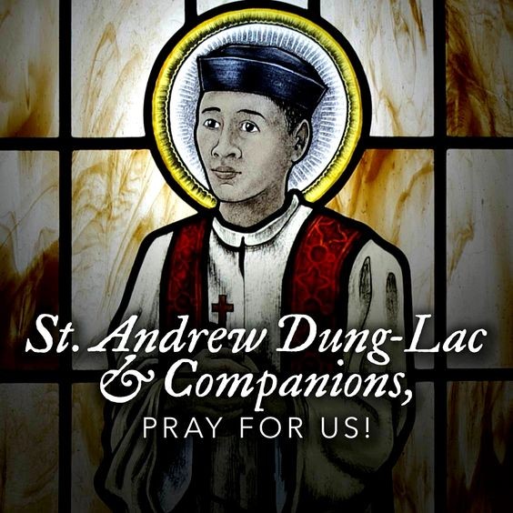 24 novembre: sant’Andrea Dung-Lac e compagni martiri vietnamiti, nacque nel 1795 circa nella provincia di Bac-Ninch (Vietnam), da genitori così poveri che se ne disfecero volentieri vendendolo ad un catechista cattolico. Questi lo condusse alla missione di Vinh-Tri, dove fu battezzato, istruito e dopo otto anni promosso catechista. Trascorsi altri dieci anni con buona riuscita nella sua attività, intraprese gli studi teologici, e il 15 marzo 1823 fu ordinato sacerdote. Fu nominato parroco in varie zone, si trovava da ultimo in quella di Ké-Dam, quando, distruttagli la casa dai pagani, fu obbligato a ritirarsi a Ké-Sui, donde si recava presso le varie cristianità per amministrare i sacramenti. Là fu arrestato la prima volta e condotto alla prefettura di Ly-Nham, ma fu riscattato dalla generosità dei cristiani che offrirono al mandarino tre verghe di argento. Allora, per poter continuare i suoi ministeri, cambiò il nome di Dung in quello di Lac, passò in un’altra prefettura e diede libero sfogo al suo zelo, spingendosi audacemente nelle pericolose provincie di Hanoi e di Nam-Dinh. Arrestato ancora una volta il 10 novembre 1839 dal sindaco di Ké-Song, fu rilasciato dietro il pagamento di 200 pezze d’argento raccolte fra i cristiani, ma mentre attraversava il fiume in barca per allontanarsi, ebbe delle difficoltà per cui fu aiutato a scendere a terra sull’altra sponda; chi l’aiutò era il segretario del prefetto che riconosciutolo esclamò: «Ho preso un maestro di religione!». Condotto nella prigione di Hanoi, il 16 novembre 1839, fu sottoposto a stancanti interrogatori e invitato più volte ad apostatare e calpestare la croce, ma essendo restato fermo nella sua fede venne condannato alla decapitazione, sentenza eseguita il 21 dicembre 1839.