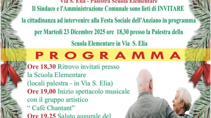 L’evento si terrà martedì 23 dicembre 2025, con inizio alle ore 18:30, presso la palestra della Scuola Elementare in Via S. Elia. Il Sindaco e l’Amministrazione Comunale invitano tutta la cittadinanza a partecipare a una serata all’insegna della convivialità, della musica e dello spirito natalizio.