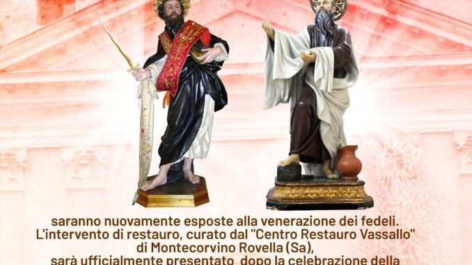 L’intervento, eseguito dal Centro Restauro Vassallo di Montecorvino Rovella (SA), ha restituito splendore e dignità artistica ai simulacri, custoditi da generazioni come simbolo di fede e tradizione.