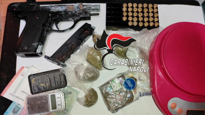 E’ stato arrestato per detenzione di droga a fini di spaccio un 24enne di Scafati già noto alle ffoo. E’ stato notato dai militari mentre era in auto nel parco Penniniello di Torre Annunziata. Ha provato ad allontanarsi ma è stato bloccato e perquisito: nelle sue disponibilità 48 grammi di hashish. La perquisizione è stata estesa all’abitazione dove i carabinieri hanno rinvenuto ancora droga – 18 grammi di marijuana – 2 bilancini di precisione, 1 pistola replica priva di tappo rosso e 34 cartucce a salve. L’arma era nascosta dietro una piastrella sulla parete dell’ingresso.