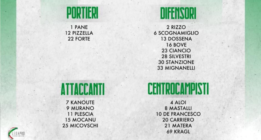 Antonio Di Gaudio: È rimasto fuori dai convocati a scopo precauzionale per un affaticamento muscolare.