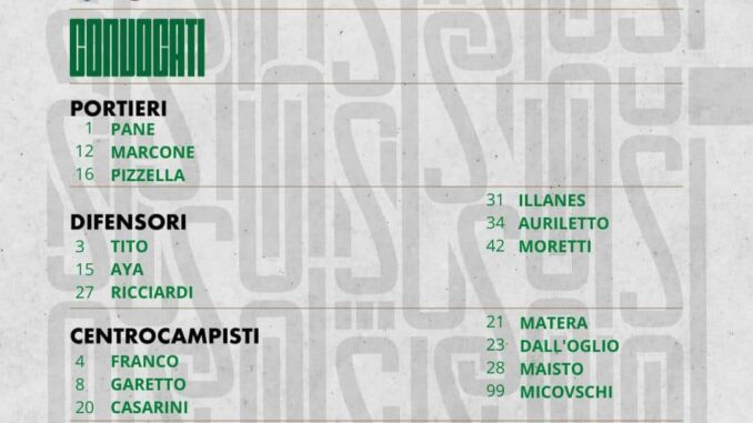 Ecco la lista completa per la trasferta pontina.