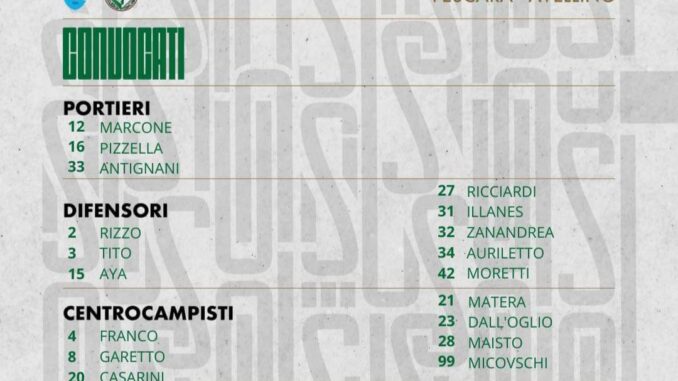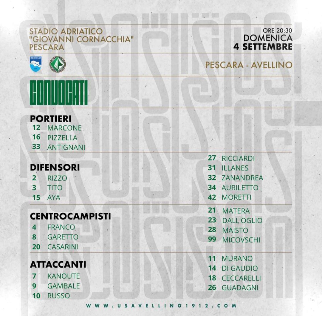 U.S. Avellino. I convocati per l’esordio di domani a Pescara 03/09/2022 binews.it Calcio Avellino, Calcio Avellino, EVIDENZA, SPORT 0 Taurino, per l’esordio in campionato di domani a Pescara, ore 20:30, ha convocato 25 calciatori. Non figurano Pane, infortunato e Trotta, squalificato. La lista