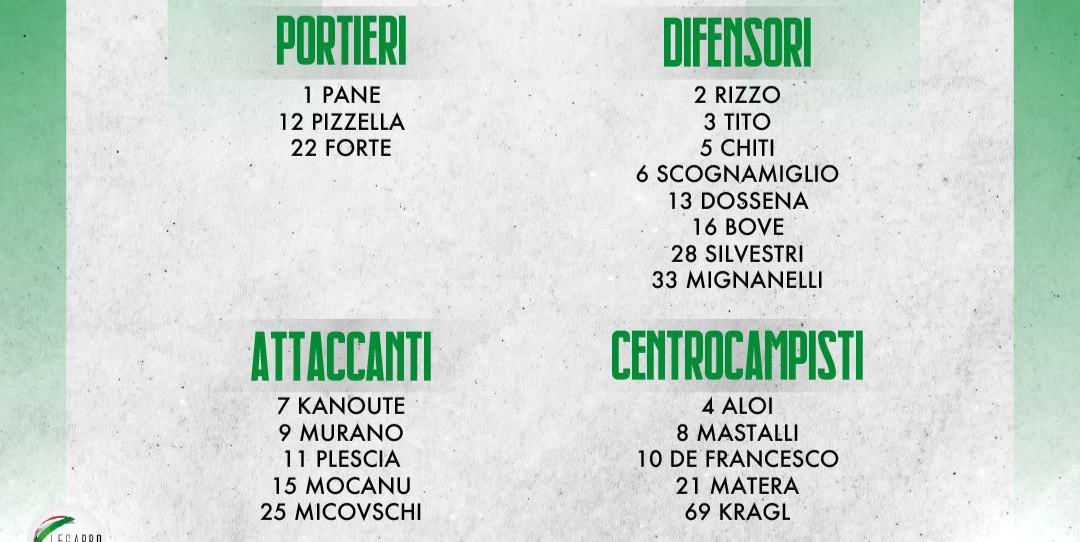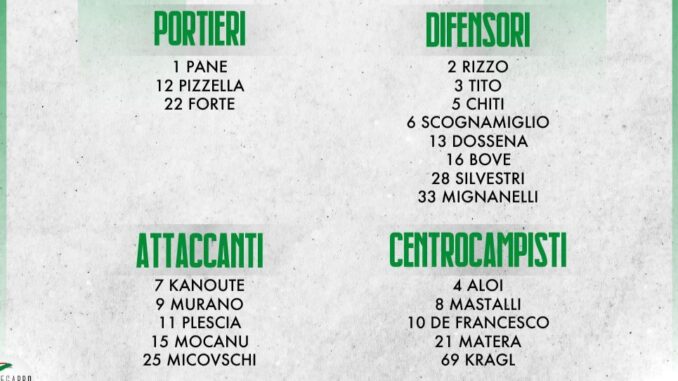 Oggi l’Avellino affronta il Picerno, appuntamento allo studio “Curcio” alle 14.30. Non ci saranno Carriero, acciaccato, Di Gaudio, causa Covid, Ciancio, squalificato, Maniero, infortunato. Rientrano Bove, Scognamiglio, Matera. Tra i convocati anche Chiti. Ecco la lista completa.