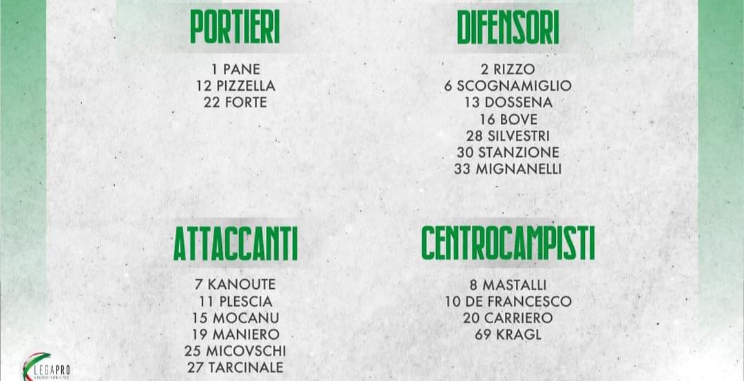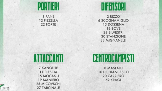 Domani l’Avellino sarà di scena allo “Iacovone” di Taranto per sfidare gli ionici, appuntamento alle 14.30. Rientrano dalle squalifiche Bove e Silvestri, non ci saranno Ciancio che, negativizzatosi dal Covid, ha avuto un permesso per la nascita del figlio, Matera per un fastidio al flessore dopo la gara contro il Palermo, Chiti e Di Gaudio fermi da un po’ di tempo, Aloi e Tito squalificati, Murano, causa Covid . Figura tra i convocati il tedesco Kragl, ripresosi dopo qualche acciacco muscolare. Viste le 7 assenze, mister Gautieri porterà nella città dei due mari i Primavera Mocanu, Stanzione e Tarcinale. Ecco la lista.