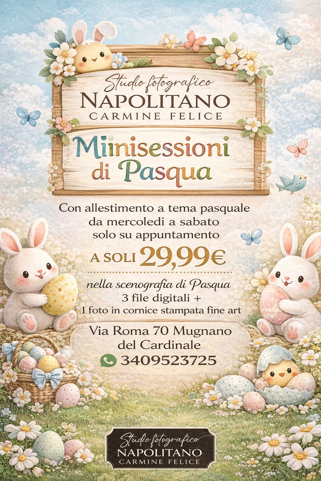 State cercando delle foto dolcissime per Pasqua? Lo staff dello studio fotografico di Carmine Felice Napolitano ha creato una scenografia speciale anzi perfetta per tutti i bambini! Le mini sessioni di Pasqua sono disponibili da MERCOLEDÌ a SABATO, solo su prenotazione.