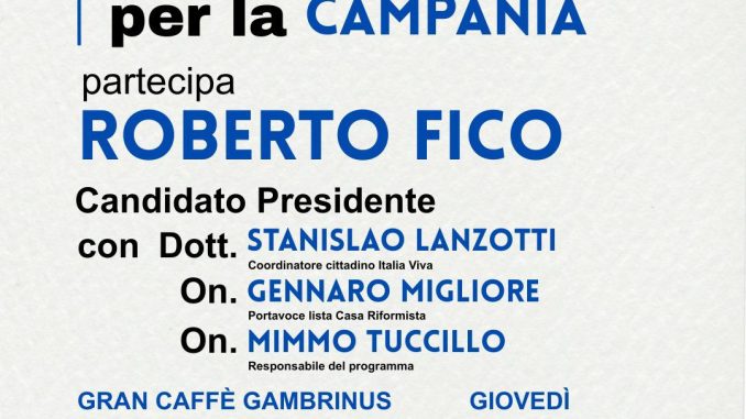 All’iniziativa parteciperanno, fra gli altri, Stanislao Lanzotti coordinatore cittadino di Italia Viva e gli ex parlamentari Gennaro Migliore portavoce della lista e Domenico Tuccillo responsabile del programma di Casa Riformista nonché i candidati della lista.