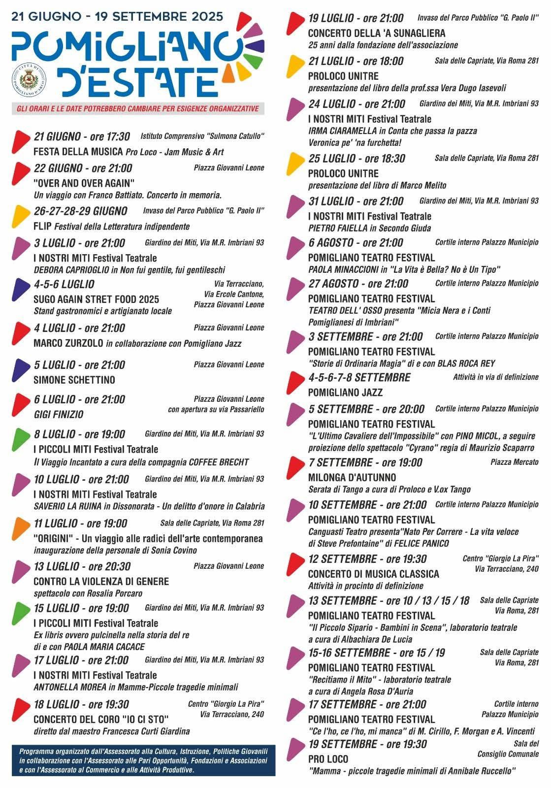 Il programma completo è disponibile online: scaricalo, condividilo e vivi l’estate a Pomigliano.