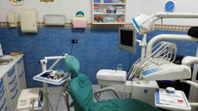 Nel quadro dell’intensificazione dei servizi di prevenzione generale e di controllo economico del territorio, con particolare attenzione all’abusivismo commerciale ed alla tutela della salute pubblica, i finanzieri del Comando Provinciale di Napoli hanno scoperto in città un falso professionista che, sprovvisto dei titoli accademici, effettuava visite odontoiatriche presso uno studio dentistico privo di qualsiasi autorizzazione per l’esercizio della professione. In particolare, i finanzieri del I Gruppo Napoli, a seguito di un’attività infoinvestigativa, hanno scoperto in città, all’interno di un palazzo della centralissima via Roma, un 59enne che esercitava abusivamente la professione medica di dentista, ingannando così gli ignari pazienti, i quali venivano accolti in un locale privo delle più basilari regole igienico-sanitarie. Il falso medico, che da circa 10 anni operava nel settore, è stato colto in flagranza mentre era intento ad effettuare una visita odontoiatrica ad una giovane paziente. Al termine dell’attività ispettiva, sono stati posti sotto sequestro, oltre allo studio abusivo, una poltrona da lavoro per dentista completa di accessori (c.d. “riunito”), medicinali tra i quali anche anestetici, mentre il falso dentista è stato denunciato all’Autorità Giudiziaria competente per il reato di esercizio abusivo di professione medica. Sono in corso accertamenti sulla documentazione extracontabile rinvenuta all’interno del locale, allo scopo di ricostruire compiutamente il volume d’affari e gli elementi positivi di reddito sottratti al fisco, atteso che il sedicente professionista arrivava a percepire anche 100 euro per una singola visita. Il servizio testimonia il costante presidio esercitato dalla Guardia di Finanza di Napoli sul territorio a salvaguardia delle leggi vigenti in materia sanitaria, a tutela dei sani operatori economici rispettosi delle regole comuni, nonché della salute dei cittadini, pilastro fondamentale della nostra società.