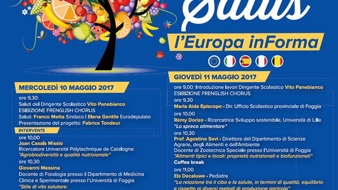 La Scuola Secondaria Statale di Primo Grado “G.Pavoncelli” di Cerignola, a conclusione del progetto triennale “Cultivons l’Europe”, inserito nell’ambito del programma Erasmus+, organizza, nei giorni 10 e 11 maggiopresso le Officine Fornari e Polo Museale Civico, il convegno internazionale “Cibus et Salus – L’Europa inForma” sui temi dell’agroecologia, della sicurezza delle forniture alimentari e della protezione delle risorse naturali.Il convegno sarà l’ultima tappa di un percorso iniziato nel 2014 e che si è articolato attraverso azioni, mobilità degli alunni e seminari di progetto miranti a programmare le attività. I Paesi partecipanti sono 4: Francia, Belgio, Spagna e Italia.