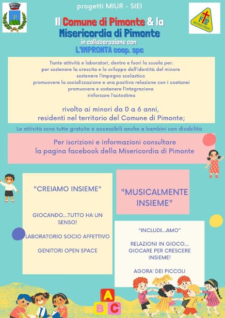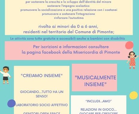 Antonella Amodio, referente della Misericordia di Pimonte per l’iniziativa, ha dichiarato: “Il nostro progetto ha l’obiettivo di fornire strumenti per lo sviluppo armonioso della personalità del bambino attraverso l’utilizzo di diverse modalità espressive nella sfera corporea, sociale, intellettiva ed emozionale. Non a caso i nostri laboratori, tenuti da personale specializzato, vertono sulla musica, sulla psicomotricità, sulla creatività e sull’ elaborazione socio- affettiva. Grazie alla collaborazione con la dirigente scolastica dell’IC Paride del Pozzo e al team docenti alcuni di questi laboratori saranno svolti in orario curriculare; altri saranno organizzati nei locali della parrocchia. Ringraziamo i servizi sociali del Comune di Pimonte in particolar modo l’assessore Anna Ospizio per il supporto e la disponibilità avuta e per la sensibilità che ha dimostrato per i piccoli del nostro paese”. Ha concluso Amodio