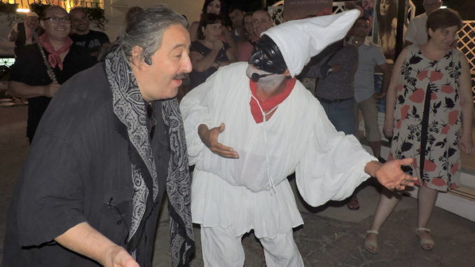 Si è svolta Domenica 20 Agosto a Sorrento a Villa Fiorentino, la manifestazione “Antichi mestieri e tammorre“Progetto ideato dall’ artista poliedrico Angelo Iannelli e organizzato dall’Associazione Ars Scrivendi di Luigi Leone , nell’ambito degli eventi estivi della Fondazione città di Sorrento . Una serata indimenticabile per tantissimi turisti e appassionati accorsi in massa per ammirare la bellezza delle tradizioni popolari in costiera sorrentina , tanto che in breve tempo Villa Fiorentino è risultata Soul Out. La kermesse è iniziata con la presentazione degli antichi mestieri, gli attori :Marcello Colasurdo e Angelo Iannelli che ha poi magistralmente interpetrato Pulcinella emozionando i presenti.Tra i mestieri ricordiamo: ‘ O impagliaseggie,’O vinto ,‘o ncensiere’ o concia piatt” o cucchiarar. . La serata ha visto successivamente il concerto del maestro Marcello Colasurdo e la paranza Vesuvius che ha letteralmente mandato in estasi il pubblico, canti a figliola, celentane, tammurriate , ritmi vesuviani per la gioia dei tantissimi danzatori proveniente da tutta la regione Campania. Colasurdo ha ricordato l’importanza della montagna nella vita degli uomini ,condannando i piromani e chi non ama la terra. Premiato infine l’ambasciatore del sorriso e presidente della Vesuvius Angelo Iannelli con la nomina di “Angelo dell’amore” per il suo impegno nel sociale con un opera d’arte dell’artista Michele De Angelis . Soddisfatti gli organizzatori della manifestazione per il successo hanno dato appuntamento alla prossima edizione.