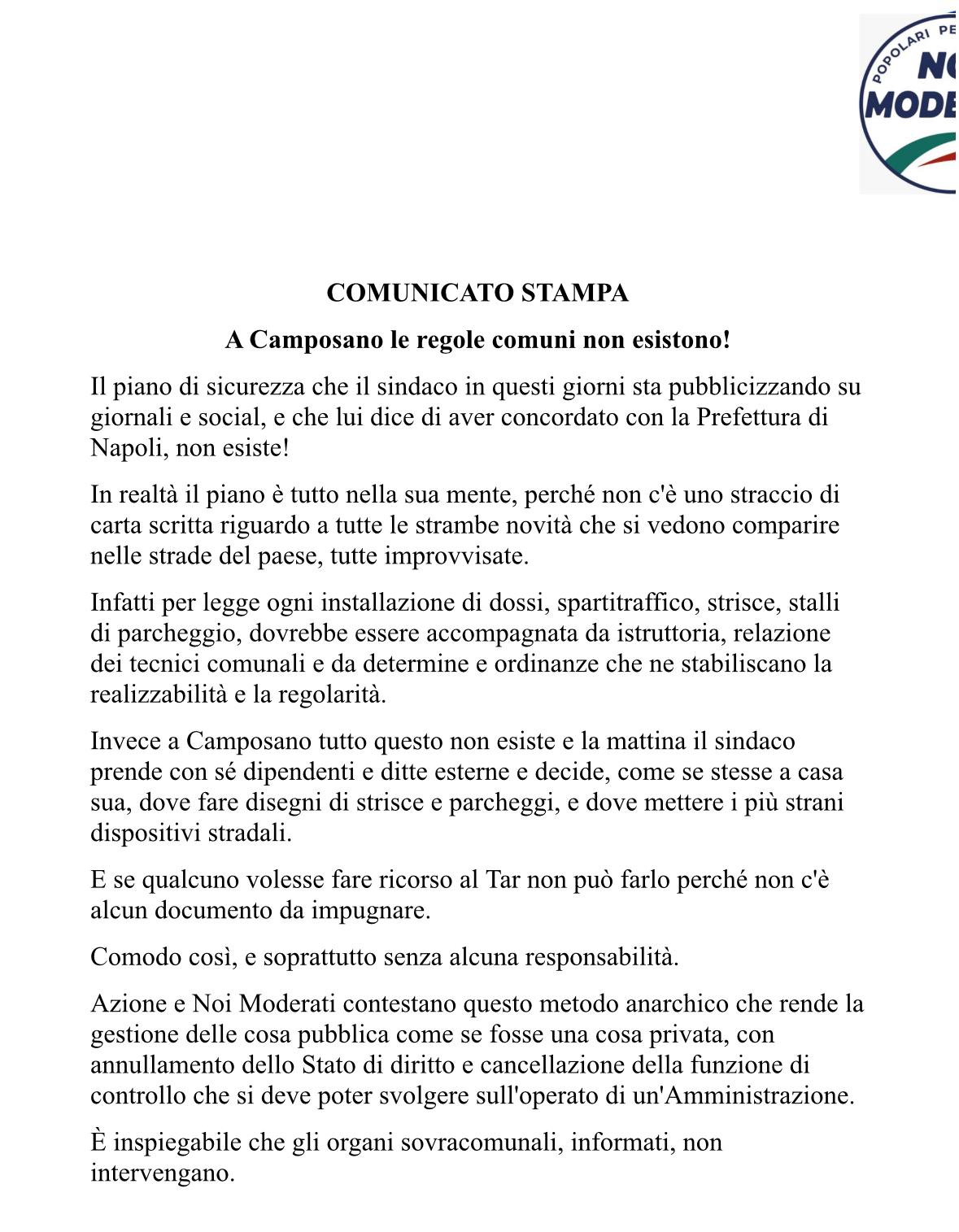 «La cosa pubblica non può essere gestita come un affare personale. Camposano ha diritto a regole chiare, atti trasparenti e una viabilità sicura, ma soprattutto legale. Chiediamo che venga ripristinato il rispetto delle norme e delle istituzioni.» Azione e Noi Moderati – Camposano