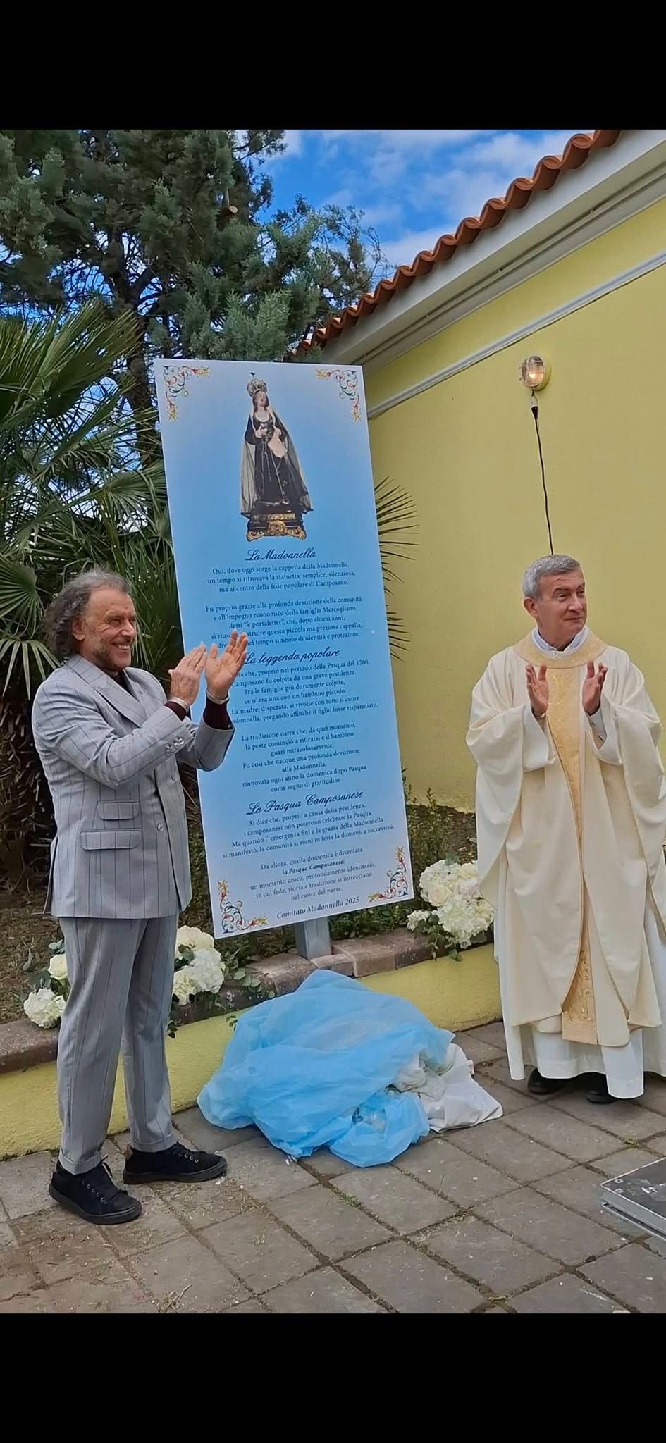 La processione ha poi accompagnato la statua della Madonnella fino alla cappella situata accanto al ponte sull’alveo Avella. Qui si è svolta l’inaugurazione di un nuovo totem informativo, realizzato grazie all’impegno congiunto del Comitato Madonnella e del Comitato Civico Camposano, con l’obiettivo di valorizzare e preservare la memoria storica del luogo.