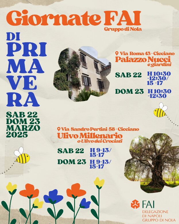 Tra i tesori svelati nel territorio campano, il Gruppo FAI di Nola apre le porte a due siti straordinari a Cicciano: Palazzo Nucci e l’Ulivo Millenario. Due luoghi ricchi di storia e fascino che offriranno ai visitatori un viaggio unico tra cultura, natura e tradizione.