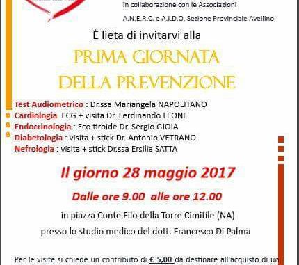 L’associazione ” Genitori del Sud ” presente sul territori da alcuni anni , organizza la Prima giornata della Prevenzione con il supporto delle Associazioni : Aido Sez. Provinciale Avellino e ANERC . 26/05/2017 binews.it NOLANO 0