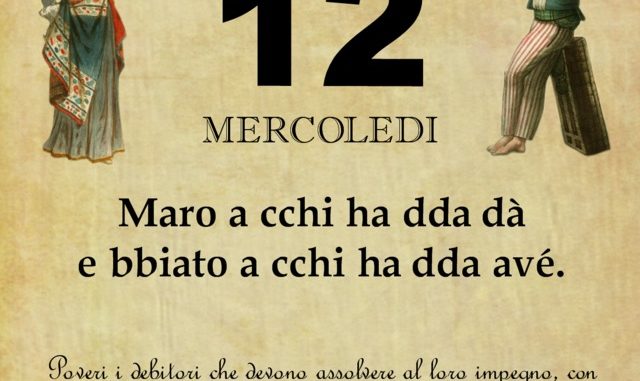 ‘O PRUVERBIO D’ ‘O JUORNO. Mercoledì 12 febbraio 2020 12/02/2020 binews.it EVIDENZA, Il Proverbio del Giorno 0 di Gianni Polverino Maro a cchi ha dda dà e bbiato a cchi ha dda avé. Poveri i debitori che devono assolvere al loro impegno, con tutti gli interessi e beati i creditori che hanno sempre da riscuotere.