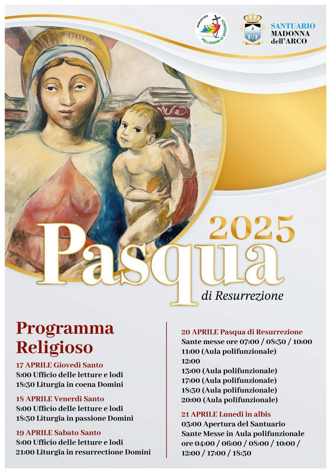 Un’occasione profonda per vivere la Settimana Santa e la Pasqua nel segno della fede e della tradizione, nel cuore della devozione popolare alla Madonna dell’Arco.                                                                                                                                                                                                                                                                                          Pasqua 2025 al Santuario della Madonna dell’Arco: il programma delle celebrazioni