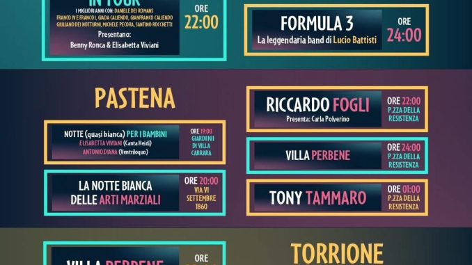 Salerno, oggi sabato 5 luglio 2025, torna a vivere una delle sue notti più attese: la Notte Bianca. Un grande evento gratuito che animerà le piazze, i quartieri e le strade cittadine con musica dal vivo, artisti di fama nazionale, spettacoli per bambini, esibizioni sportive e comicità. Una vera e propria maratona culturale e musicale che si snoderà per tutta la serata e fino a notte fonda.