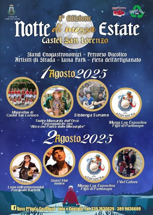 «Questa è la quarta edizione della Notte di Mezza Estate e vogliamo che sia la più bella di sempre. Abbiamo lavorato con passione per realizzare due serate piene di musica, spettacoli, giochi e sapori autentici. Un evento pensato per tutti: grandi e bambini, famiglie e giovani, turisti e cittadini. Quest’anno il tema sarà ‘Il Paese delle Meraviglie’ perché vogliamo trasportare chi viene a Castel San Lorenzo in un mondo incantato, dove ogni angolo racconta una storia».