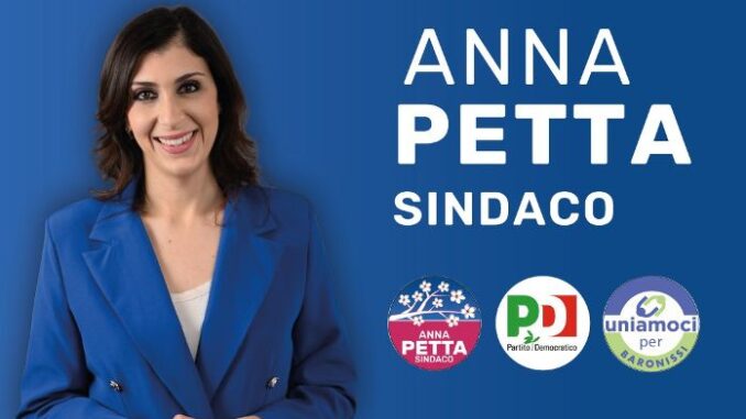La prima candidata Sindaco Donna della Città di Baronissi supportata da una coalizione di tre liste, composta dalla lista del “Partito Democratico”, lista “Anna Petta Sindaco” e lista “Uniamoci per Baronissi”. Questa ampia rappresentanza mira a coinvolgere ogni strato della società baronissese, promuovendo un dialogo costante e una partecipazione attiva. L’unificazione delle diverse anime del centrosinistra di Baronissi rappresenta una novità assoluta dell’ultimo trentennio. Un progetto unitario, caratterizzato dalla collegialità e fondato sui valori della condivisione e della gentilezza, che supera personalismi e riunifica la Città.