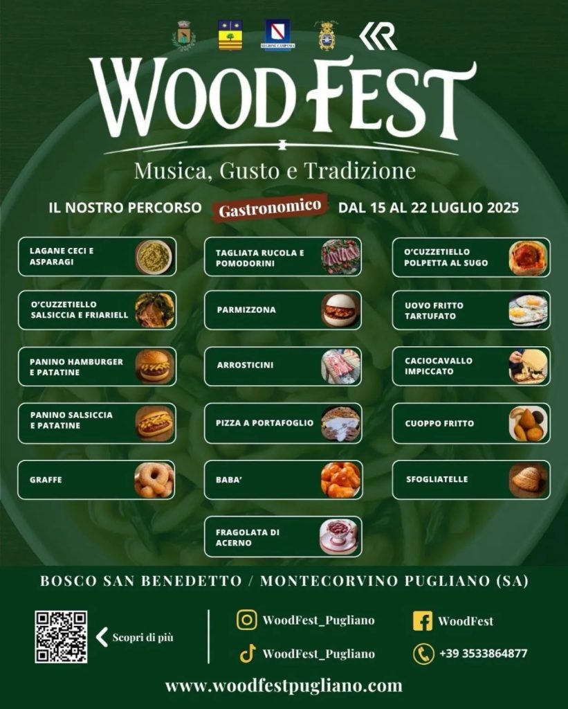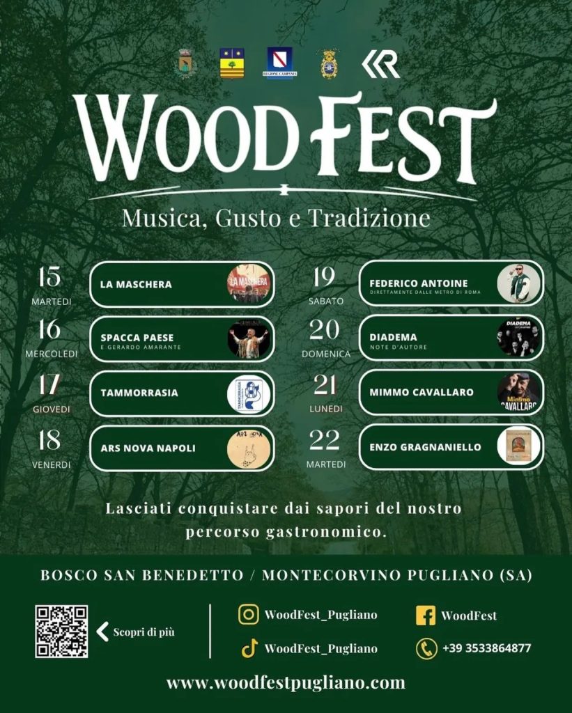 Dal 15 al 22 luglio 2025, il Bosco San Benedetto di Montecorvino Pugliano, in provincia di Salerno, si trasformerà in un palcoscenico naturale per ospitare l’edizione 2025 del Wood Fest, otto giorni di festa all’aria aperta, tra specialità culinarie, artigianato e concerti dal vivo.